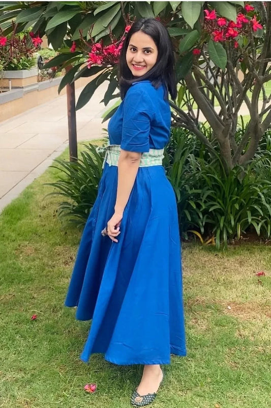 Blue collar Dress with belt