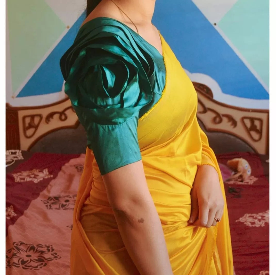 The roses on the sleeves elevate the style quotient of your look. It is chic, millennial and party wear at the same time. Add this blouse to your wardrobe to make it more fun.
